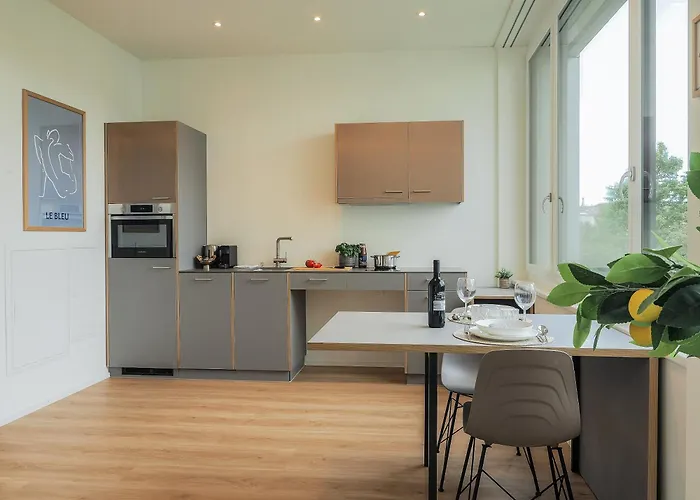 アパートからドライ・ヴァイエレンからわずか1.9kmで、Bleicheli Stadtloungeまではほんの数分です。 このアパートはMoE Museum of Emptinessから歩いてわずか7分の場所にあります。